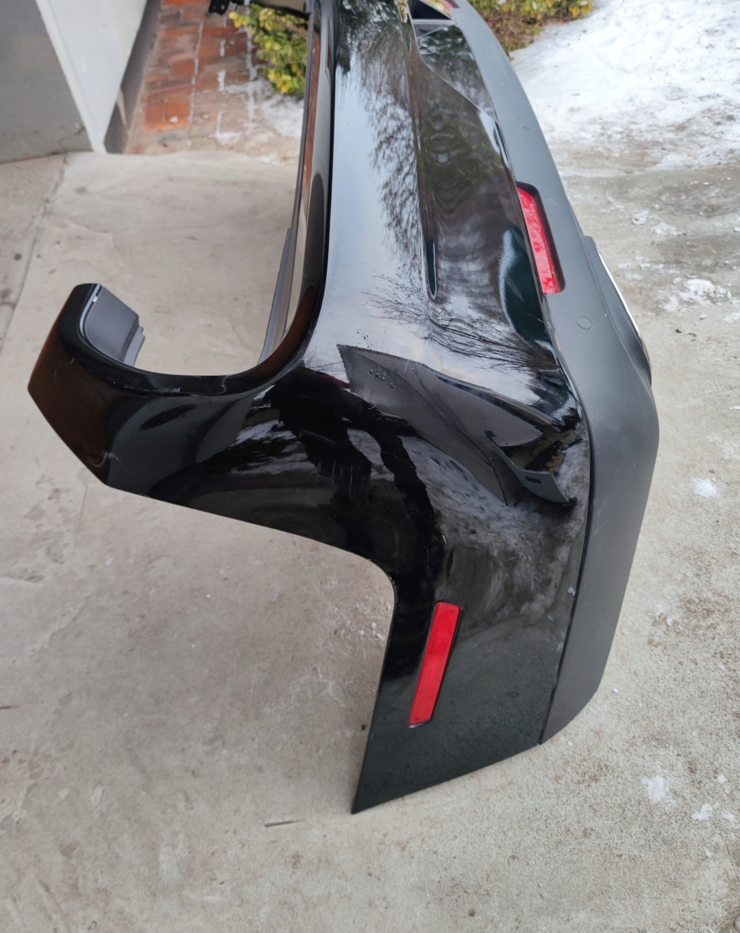 Material:Bumpers can be made from materials like plastic or metal. This one appears to be made of plastic with metal exhaust outlets.